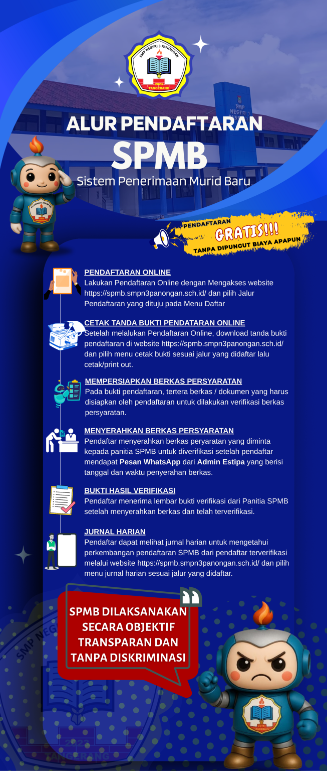 Silahkan download dokumen persyaratan SPMB yang dibutuhkan sesuai tahapan pendaftaran dan baca dokumen dengan seksama.